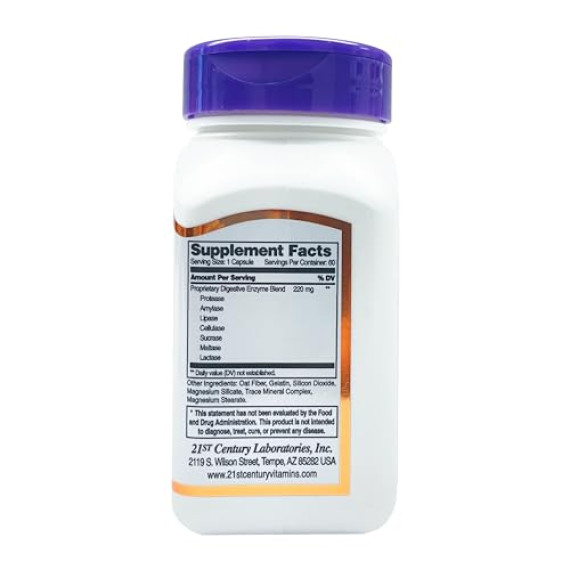 *Some information on the 21st Century Digestive Enzymeslabel may be missing, or it may have been written incorrectly. We work hard to keep the information accurate & up to date. Please let us know if you discover any errors.