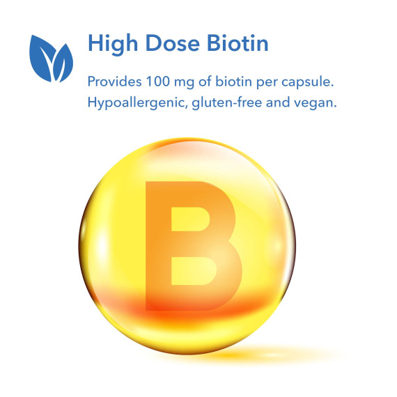 | Biotin | 100 mg | 600 mcg 16567% | 5000 mcg d-Biotin 1900% | 8 mg 92% |
