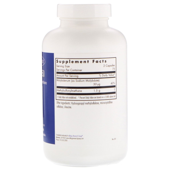 *Some information on the Allergy Research Group MSM 750label may be missing, or it may have been written incorrectly. We work hard to keep the information accurate & up to date. Please let us know if you discover any errors.