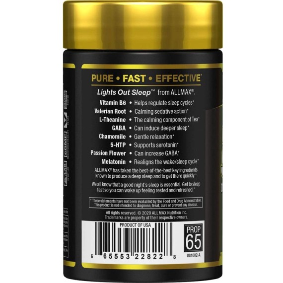 *Some information on the ALLMAX Nutrition Lights Out Sleep Melatonin + GABA + Valerian Rootlabel may be missing, or it may have been written incorrectly. We work hard to keep the information accurate & up to date. Please let us know if you discover any errors.