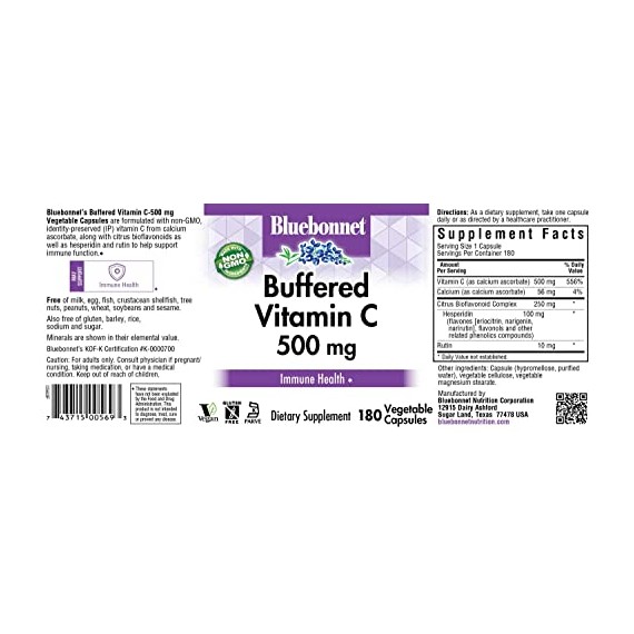 *Some information on the Bluebonnet Nutrition Buffered Vitamin Clabel may be missing, or it may have been written incorrectly. We work hard to keep the information accurate & up to date. Please let us know if you discover any errors.