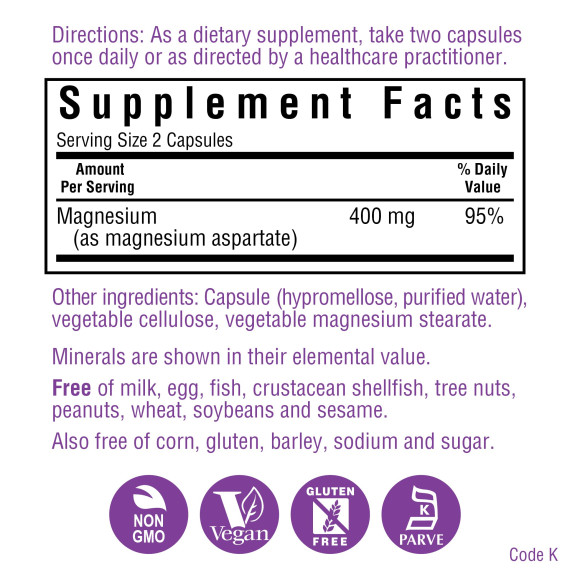 *Some information on the Bluebonnet Nutrition Magnesium Aspartatelabel may be missing, or it may have been written incorrectly. We work hard to keep the information accurate & up to date. Please let us know if you discover any errors.