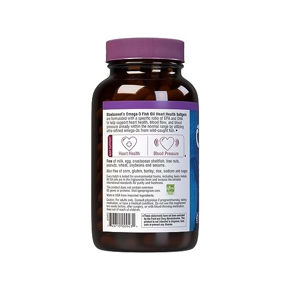 *Some information on the Bluebonnet Nutrition Natural Omega-3 Heart Formulalabel may be missing, or it may have been written incorrectly. We work hard to keep the information accurate & up to date. Please let us know if you discover any errors.