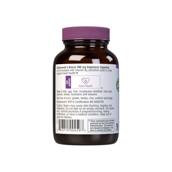 *Some information on the Bluebonnet Nutrition Niacinlabel may be missing, or it may have been written incorrectly. We work hard to keep the information accurate & up to date. Please let us know if you discover any errors.