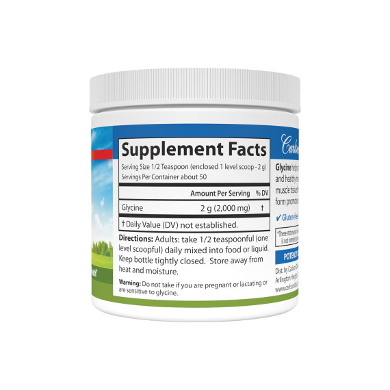 *Some information on the Carlson Labs Glycine Amino Acid Powderlabel may be missing, or it may have been written incorrectly. We work hard to keep the information accurate & up to date. Please let us know if you discover any errors.