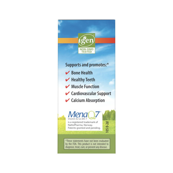 | Vitamin K | 45 mcg from chickpeas (Cicer arietinum)(seed)] (as MK-7 menaquinone-7) | missing substance or information* | missing substance or information* | missing substance or information* |
