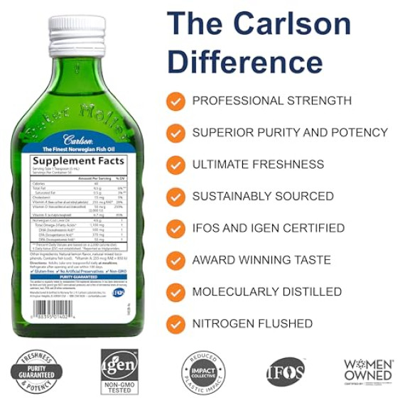 *Some information on the Carlson Labs Norwegian Super D Omega·3label may be missing, or it may have been written incorrectly. We work hard to keep the information accurate & up to date. Please let us know if you discover any errors.