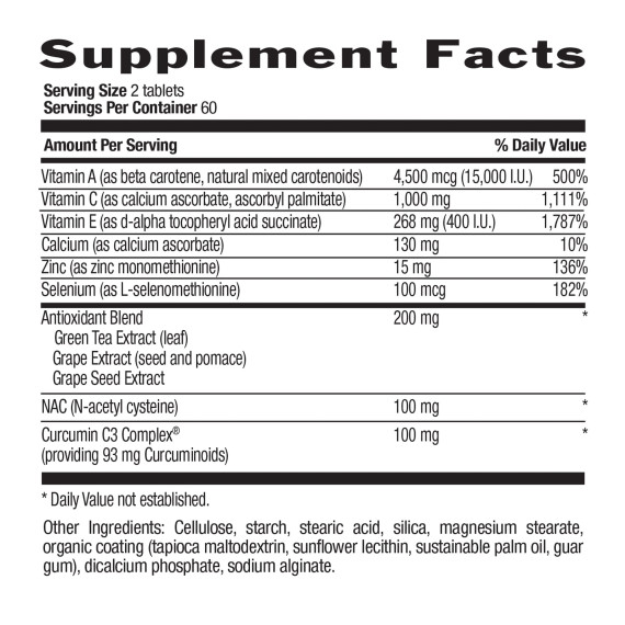 | Vitamin C | 1,000 mg (as calcium ascorbate, ascorbyl palmitate) | missing substance or information* | missing substance or information* | missing substance or information* |