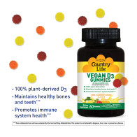 *Some information on the Country Life Vegan D3 Gummieslabel may be missing, or it may have been written incorrectly. We work hard to keep the information accurate & up to date. Please let us know if you discover any errors.