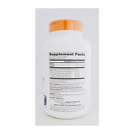 *Some information on the Doctor's Best Pure Wild Alaskan Fish Oil with AlaskOmegalabel may be missing, or it may have been written incorrectly. We work hard to keep the information accurate & up to date. Please let us know if you discover any errors.