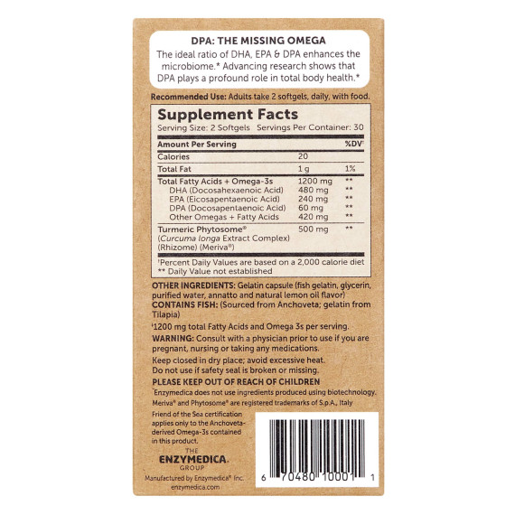 *Some information on the Enzymedica Aqua Biome Fish Oil + Meriva Curcuminlabel may be missing, or it may have been written incorrectly. We work hard to keep the information accurate & up to date. Please let us know if you discover any errors.