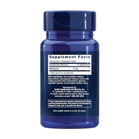 *Some information on the Life Extension Melatonin 6 Hour Timed Releaselabel may be missing, or it may have been written incorrectly. We work hard to keep the information accurate & up to date. Please let us know if you discover any errors.
