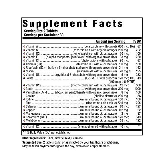 | Vitamin B2 | 2.1 mg (riboflavin 5'-phosphate sodium in organic brown rice) | 11 mg (as Riboflavin-5'-Phosphate Sodium) | missing substance or information* | 25 mg (Vitamin B-2) |
