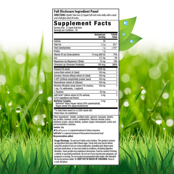 | Saffron Extract | 5 mg (0.3% safranal)(stigma) | missing substance or information* | missing substance or information* | missing substance or information* |