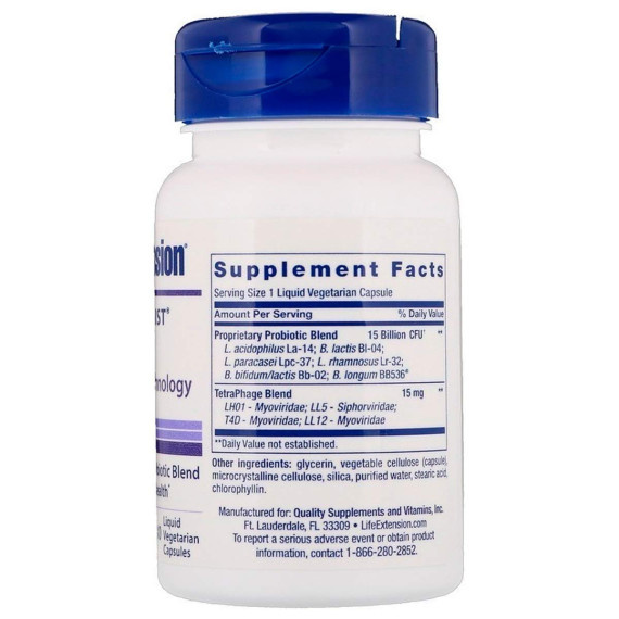 *Some information on the Life Extension, Florassist GI with Phage Technologylabel may be missing, or it may have been written incorrectly. We work hard to keep the information accurate & up to date. Please let us know if you discover any errors.