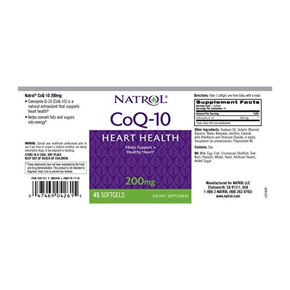 *Some information on the Natrol Co-Q10label may be missing, or it may have been written incorrectly. We work hard to keep the information accurate & up to date. Please let us know if you discover any errors.