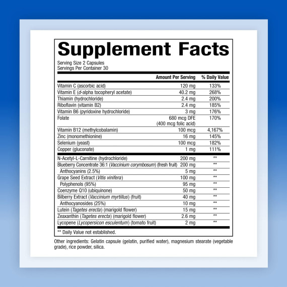 | Vitamin E | 60 IU (as d-alpha Tocopheryl Acetate) | missing substance or information* | missing substance or information* | missing substance or information* |