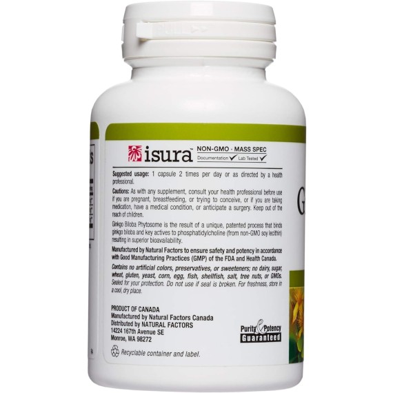 *Some information on the Natural Factors Ginkgo Biloba Phytosomelabel may be missing, or it may have been written incorrectly. We work hard to keep the information accurate & up to date. Please let us know if you discover any errors.