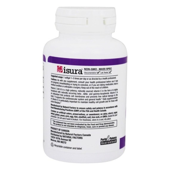 *Some information on the Natural Factors Mixed Vitamin E 200 IUlabel may be missing, or it may have been written incorrectly. We work hard to keep the information accurate & up to date. Please let us know if you discover any errors.