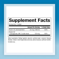 | Vitamin K | 120 mcg (menaquinone, MK-7) (natto bean) | 100 mcg (as all-trans menaquinone-7) | 45 mcg (as menaquinone-7) | 180 mcg (as Natural MK-7 (menaquinone-7) |