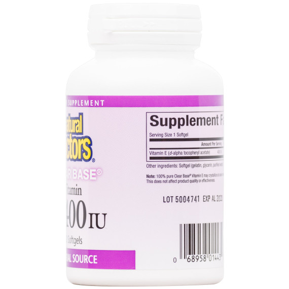 *Some information on the Natural Factors Vitamin E Clear Base 400 IUlabel may be missing, or it may have been written incorrectly. We work hard to keep the information accurate & up to date. Please let us know if you discover any errors.