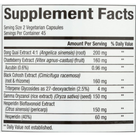 | Dong Quai (angelica Sinensis) | 200 mg (Angelica sinensis) (root) | missing substance or information* | 100 mg (root) (Angelica sinensis) | missing substance or information* |