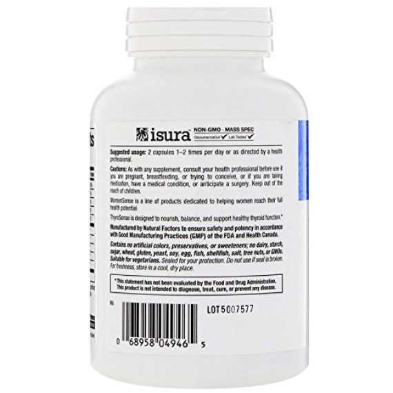 *Some information on the Natural Factors WomenSense ThyroSense Thyroid Formulalabel may be missing, or it may have been written incorrectly. We work hard to keep the information accurate & up to date. Please let us know if you discover any errors.