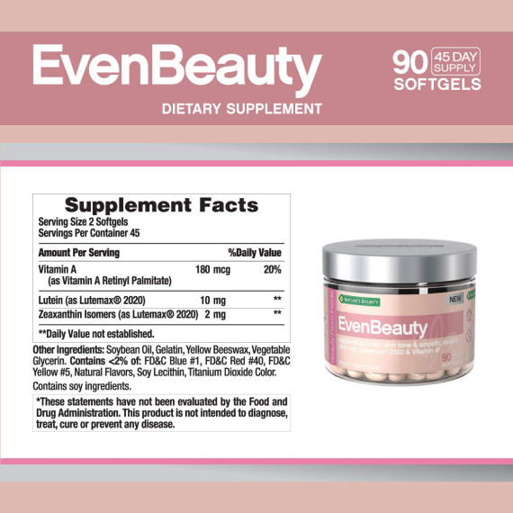 *Some information on the Nature's Bounty EvenBeautylabel may be missing, or it may have been written incorrectly. We work hard to keep the information accurate & up to date. Please let us know if you discover any errors.