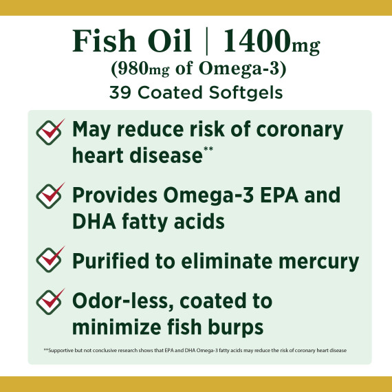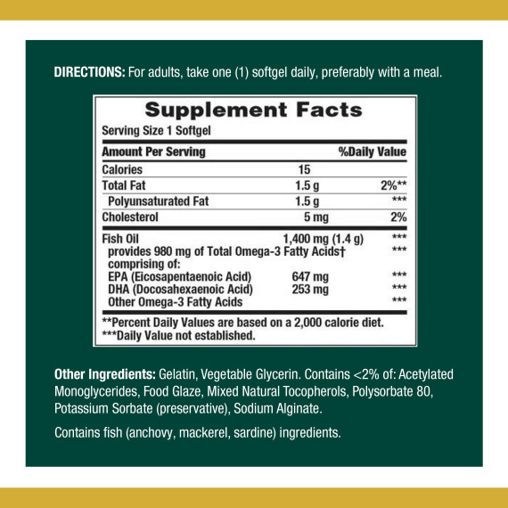 *Some information on the Nature's Bounty Fish Oil Triple Strengthlabel may be missing, or it may have been written incorrectly. We work hard to keep the information accurate & up to date. Please let us know if you discover any errors.