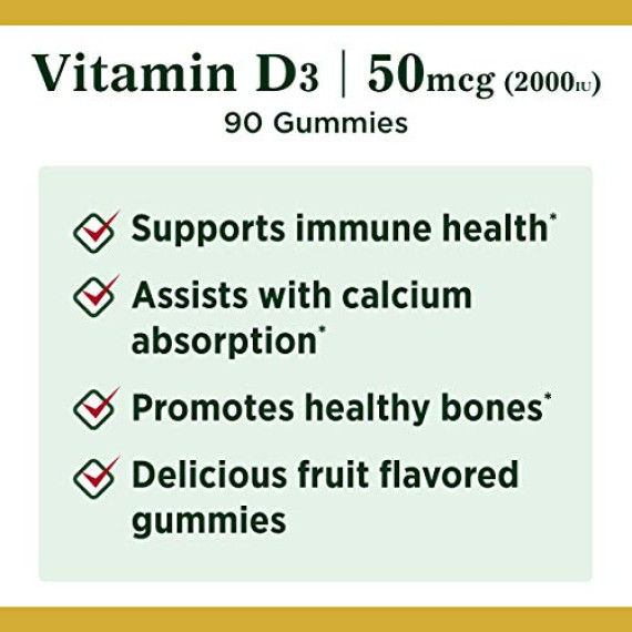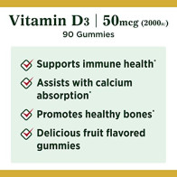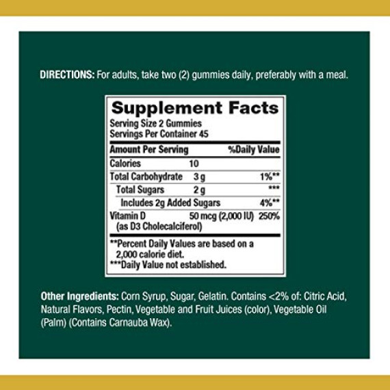 *Some information on the Nature's Bounty Vitamin D3 Gummieslabel may be missing, or it may have been written incorrectly. We work hard to keep the information accurate & up to date. Please let us know if you discover any errors.