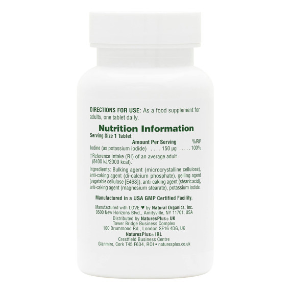 *Some information on the Nature's Plus Potassium Iodidelabel may be missing, or it may have been written incorrectly. We work hard to keep the information accurate & up to date. Please let us know if you discover any errors.