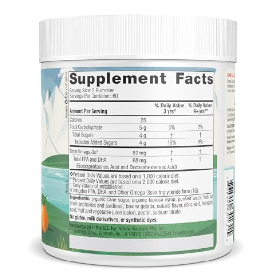 *Some information on the Nordic Naturals Nordic Omega-3 Gummies Tangerine Treatslabel may be missing, or it may have been written incorrectly. We work hard to keep the information accurate & up to date. Please let us know if you discover any errors.