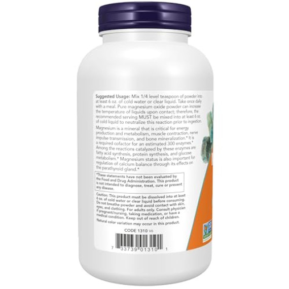 *Some information on the Now Foods Magnesium Oxide Pure Powderlabel may be missing, or it may have been written incorrectly. We work hard to keep the information accurate & up to date. Please let us know if you discover any errors.