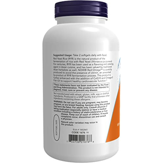 *Some information on the Now Foods Red Omega Red Yeast Rice with CoQ10label may be missing, or it may have been written incorrectly. We work hard to keep the information accurate & up to date. Please let us know if you discover any errors.