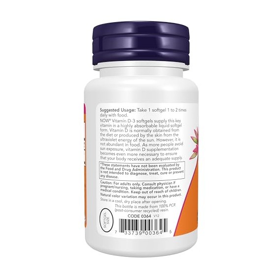 *Some information on the Now Foods Vitamin D-3 400 IU Structural Supportlabel may be missing, or it may have been written incorrectly. We work hard to keep the information accurate & up to date. Please let us know if you discover any errors.
