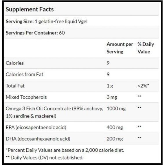 *Some information on the Paradise Herbs Omega Sure Omega-3 Concentratelabel may be missing, or it may have been written incorrectly. We work hard to keep the information accurate & up to date. Please let us know if you discover any errors.