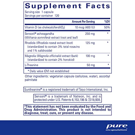 *Some information on the Pure Encapsulations Cortisol Calmlabel may be missing, or it may have been written incorrectly. We work hard to keep the information accurate & up to date. Please let us know if you discover any errors.