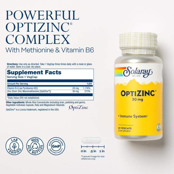 *Some information on the Solaray OptiZinclabel may be missing, or it may have been written incorrectly. We work hard to keep the information accurate & up to date. Please let us know if you discover any errors.