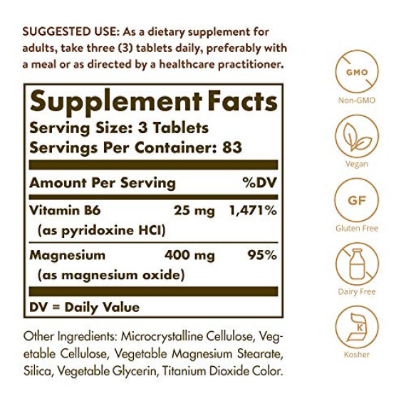 *Some information on the Solgar Magnesium with Vitamin B6label may be missing, or it may have been written incorrectly. We work hard to keep the information accurate & up to date. Please let us know if you discover any errors.