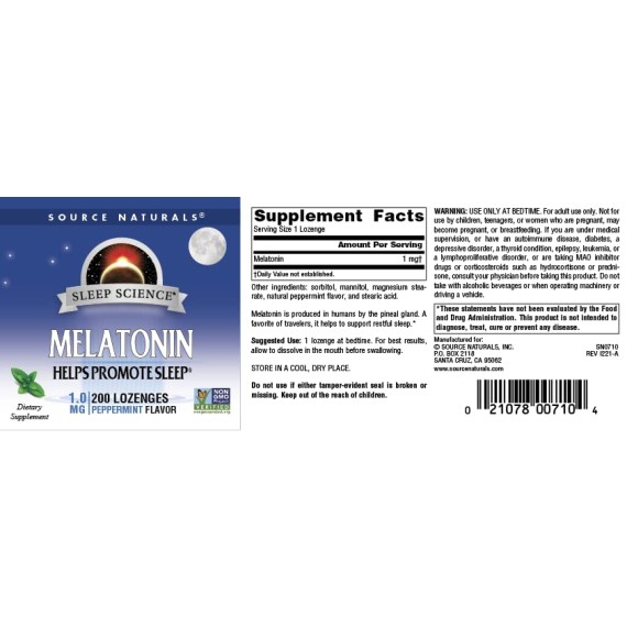 *Some information on the Source Naturals Melatonin Lozengeslabel may be missing, or it may have been written incorrectly. We work hard to keep the information accurate & up to date. Please let us know if you discover any errors.