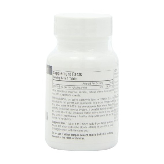 *Some information on the Source Naturals MethylCobalamin Vitamin B12label may be missing, or it may have been written incorrectly. We work hard to keep the information accurate & up to date. Please let us know if you discover any errors.