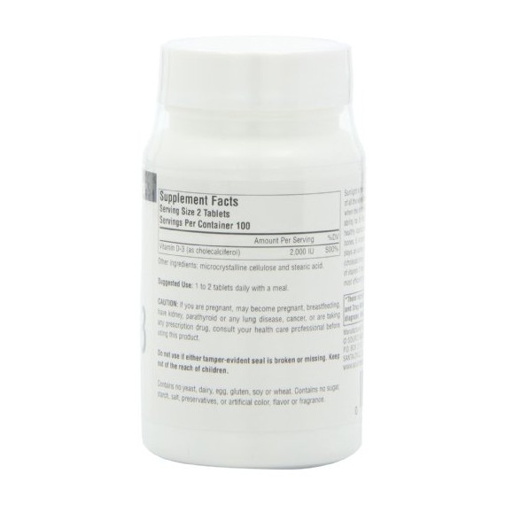 *Some information on the Source Naturals Vitamin D-3label may be missing, or it may have been written incorrectly. We work hard to keep the information accurate & up to date. Please let us know if you discover any errors.