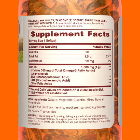 *Some information on the Sundown Naturals Fish Oil 1000 Mglabel may be missing, or it may have been written incorrectly. We work hard to keep the information accurate & up to date. Please let us know if you discover any errors.